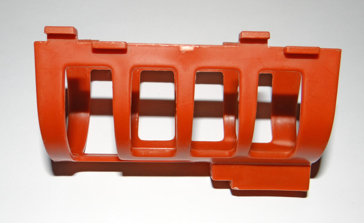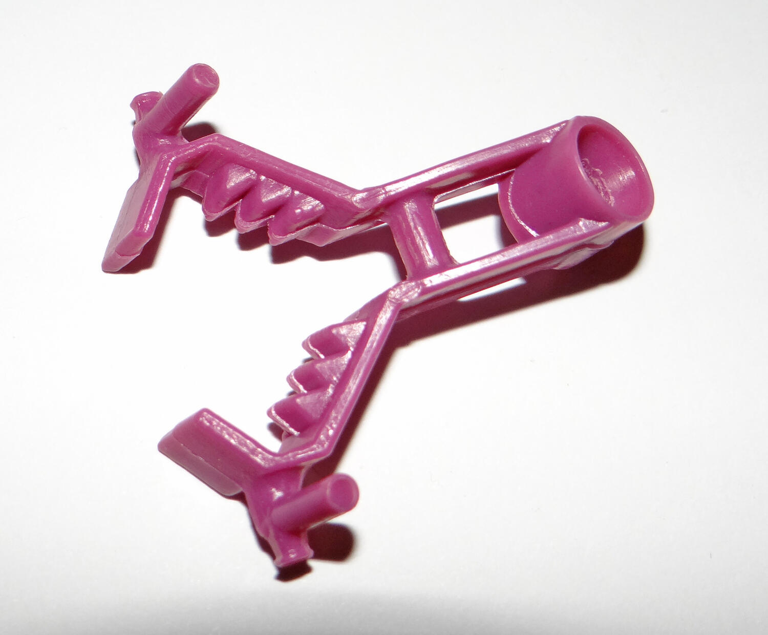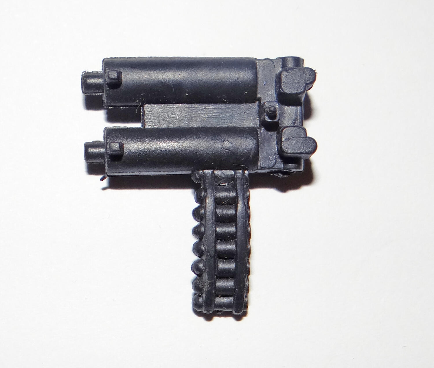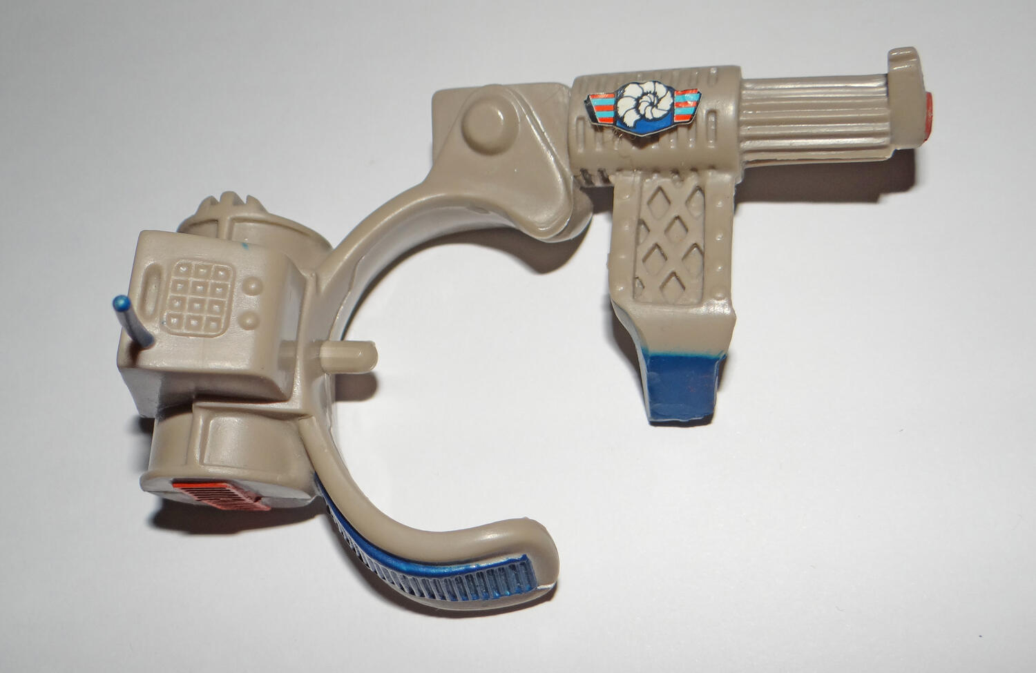 Got these mixed in with some GI Joe stuff, no idea what these are. Any help is greatly appreciated! 1. Some kind of brown grate or cover with four clips. It's about 3" long and 2" high. I have no idea what this attaches to. 2. 2.5" long brown projectile with a sticker on it. Power Rangers maybe? 3. 2" long purple claw/grabber of some sort. Looks like it has two handles and maybe something attaches to the hole. Ghostbusters maybe? 4. Large rubbery 3.5" by 3.5" machine with a backpack attached. There is a peg inside that looks like it attaches to a figure. Also has a horn or shell sticker on it. 5. Large 2" by 2" Black projectile or removable head. Has one green eye and the piece is very light. Looks like a Batman piece but I have no idea. 6. Small 1" by 1" Black twin gun with a bullet belt. Black and very flexible. Has a slot on the back, have no idea what it attaches to. |