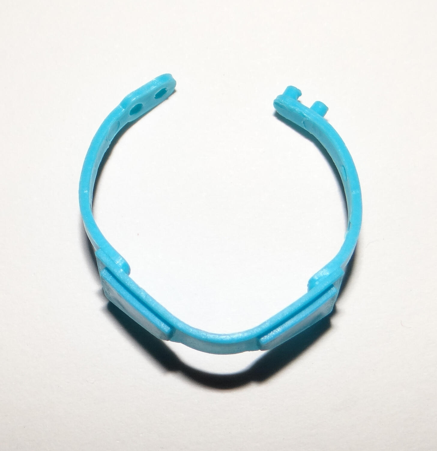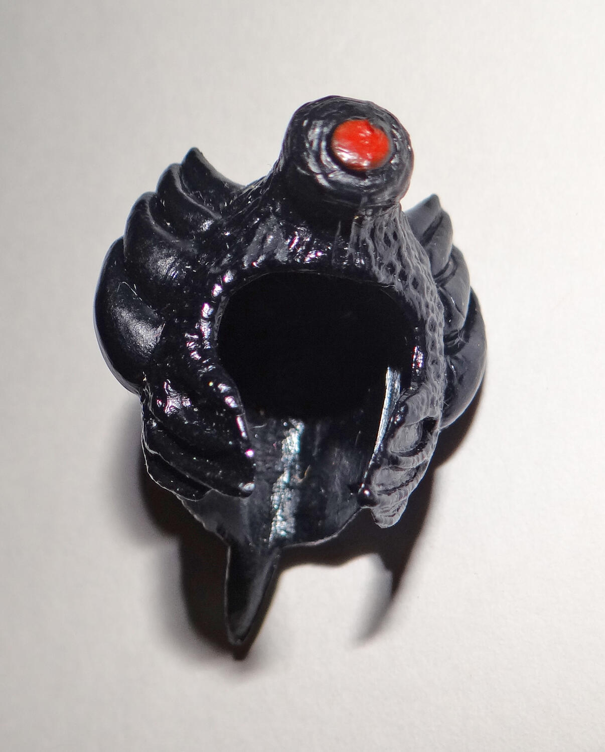 Any help is appreciated to ID these parts: 1. Glow-in-the Dark Staff. 2.75" long, came with some glow-in-the-dark accessories from the vintage Arco Other World Toy Line but this Staff is too hard of a plastic to belong to that line. 2. Black Helmet/Headress with Red Eye. 1.25" tall probably too big for a standard 3.75" figure. Has a tail and two wings, as well as some kind of red eye. I thought this might belong to one of the larger Robotech figures but it does not. 3. Light Blue Belt. Layed flat it is 2.75" long, looks like it would fit a standard 3.75" figure. Made of a harder plastic with a bit of flex to it. Also has two tabs that fit into two holes. 4. Pair of Rubber Wings. Each wing is 2" long. Clear, extremely flexible, and brittle rubber. Each wing has a peg for fitting into some kind of insect. |