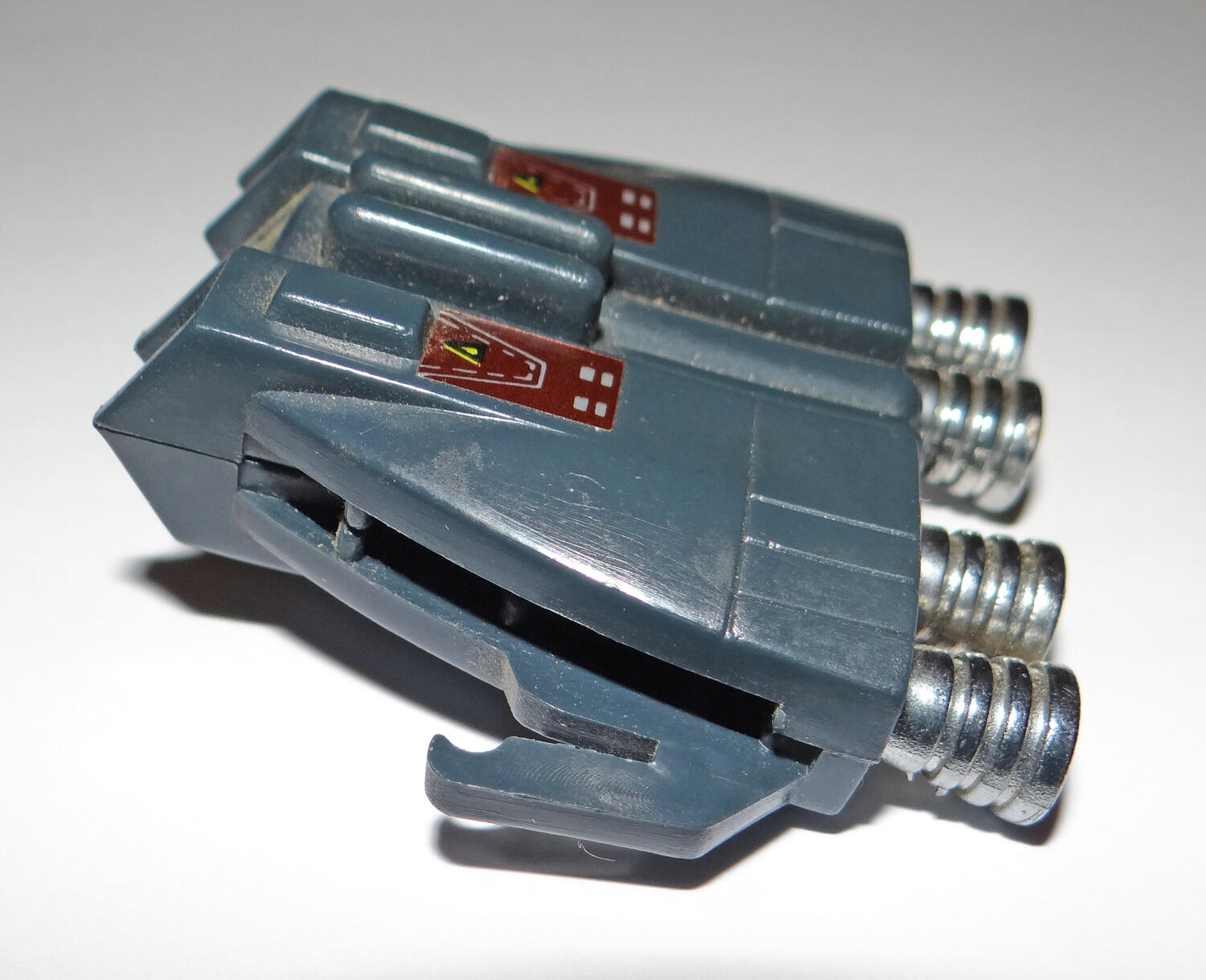 Maybe a fresh set of eyes can help with this long-unknown piece I picked up in a collection some time ago. This one has had me stumped for some time. This approx. 2.5" x 2'5" Dark Blue Jet Pack feels like G1 Transformers plastic but I can't ID this one. Has 2 clips on the back that would slide onto the back of an action figure or robot. Equipped with Chrome Boosters and has spaces on each side that something fits into. Micronauts maybe? Thanks again for the help on this one!