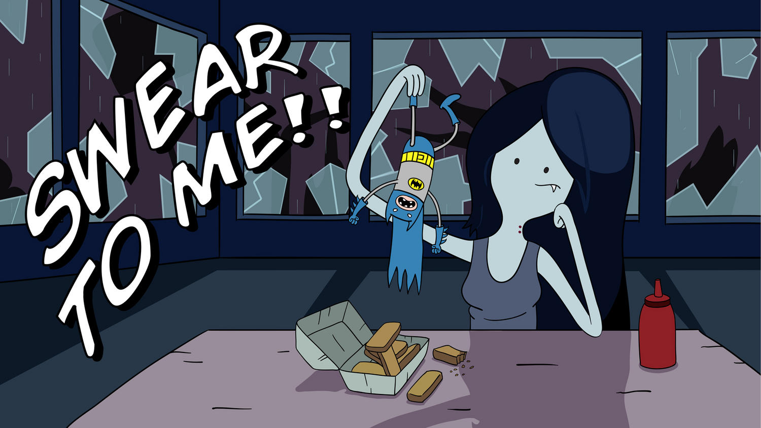 Mini-Batman's Adventure Time Adventures. A fan-art series. Mini-Batman's Adventure Time Adventures, Part One: It's RACHEL TIME http://www.toyark.com/attachment.php...1&d=1346285586 What time is it? It's RACHEL TIME! Sketched out Finn and Jake looking at something. Without showing the sketch (which would indicate that what they were looking at was small), I asked twitter "What should Finn and Jake be looking at?" @Barricade64 suggested Batman shouting "RACHEL!" Dedicated to @Barricade64 (G1Wheeljack on TFW), @TheJackSack and @preorder66. And Rachel. Both puppy and turtle faced versions. Drawn in Sketchbook Pro and Photoshop. Inked and colored in Illustrator Mini-Batman's Adventure Time Adventures, Part Two: The Elephant Who Bakes http://www.toyark.com/attachment.php...1&d=1346285586 Too many pies. Odd distribution patterns. Something's not right. Mini-Batman's Adventure Time Adventures, Part Three: I swear, Batman, if you ate my fries... http://www.toyark.com/attachment.php...1&d=1346285586 Batman... Why did you eat my fries? Mini-Batman's Adventure Time Adventures, Part Four: He Does Not Want to Play Video Games http://www.toyark.com/attachment.php...1&d=1346463036 WHERE IS IT?!??!!?!!?!? High res downloads of all images available on deviantart: Mini-Batman's Adventure Time Adventures by T16skyhopp on deviantART |