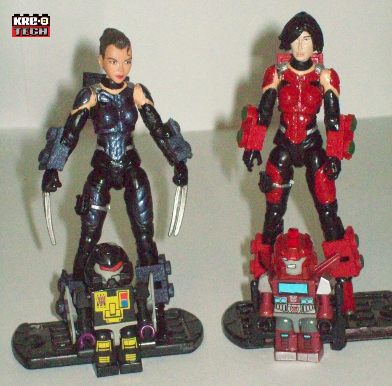 X-23/All New Wolverine was one of my first prototypes. Originally I had tried this block building method using GI Joe Webgear/Soft armor so it could be removable. But then after switching to the peg backpack system, it made swapping armor easier for future figures. Now figures didn't need dedicated webgear armor for it, the peg backpacks could work with any GI Joe gear still. Kre-O Tech Purple & Red http://www.toyark.com/attachment.php...1&d=1490939048 http://www.toyark.com/attachment.php...1&d=1490939048 http://www.toyark.com/attachment.php...1&d=1490939048 http://www.toyark.com/attachment.php...1&d=1490939048 Since I started out with Autobot red, I had to make one in Decepticon purple to mirror it. I had an extra figure that used to be an X-23 custom, so I used it as the basis for a more insecticon flavored character that would lean more jungle and forest hazards with the design elements. Stuff that's reminiscent of the Insecticons' first appearance in the G1 toon. So I partnered her with Kreon Kickback. The fun thing about her Kreon is that it has a steering attachment to it, which can emulate the brain pods that bombshell uses. Allowing her Kreon Kickback to attach to any peg plate on a construct bot to let her take it over and claim that construct-bot as her own to control. Delta 6 Suit Troop Builder http://www.toyark.com/attachment.php...1&d=1490939048 Needed a GI Joe troop builder for this dynamic, and the Delta 6 suit seemed perfect. I guess we could technically call this a Delta 7 suit. I based the paint scheme off of Texas from Red vs Blue. Yielded a kind of Halo Spartan feeling from the design, so why not have a Kre-O Tech GI Joe UNSC styled Spartan. With so much Emphasis on GI Joe and Autobots, and only one Cobra Troop Builder. It needed a Cobra big name bad guy. Zartan seemed to fit the bill, and his adaptable nature fit right in. With the armor entirely removable, it doesn't damage the figures in any way either. Construct-Bots Ironhide http://www.toyark.com/attachment.php...1&d=1490939048 http://www.toyark.com/attachment.php...1&d=1490939048 http://www.toyark.com/attachment.php...1&d=1490939048 http://www.toyark.com/attachment.php...1&d=1490939048 http://www.toyark.com/attachment.php...1&d=1490939048 Since I was taking pictures anyway, I wanted to show off a little more of what Ironhide can do with his Kreons and partner figure. Though this is only a quick bit and not the full vehicle mode she rides. When fully plated up, and sitting right, the rider becomes much more armored and part of the vehicle. Those pics are coming soon! |