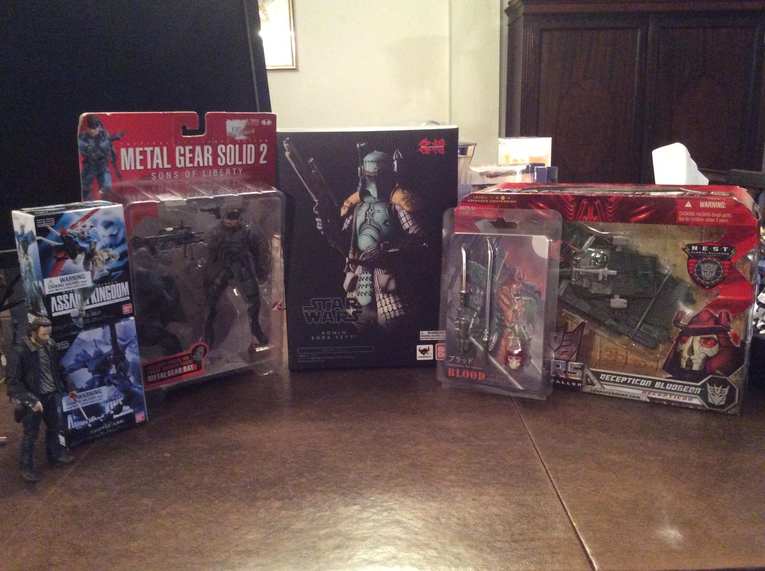 Birthday haul and I'm very happy by the number of wishlist items I got. Really pumped to get the Tamashii Nations Ronin Boba Fett and the Transformers Revenge of the Fallen Bludgeon with Headrobots mod. First thing I opened was the McFarlane Rick Grimes and I've been collecting Gundam Assault Kingdom figs for the past year.