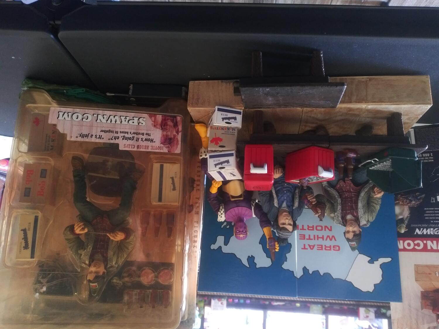 How's it going, eh? I just got this lot today of the McFarlane Bob & Doug McKenzie which I picked up real cheap on Mercari. This is definitely one of those older gems. It was a loose set of both brothers along with a newish Bob on a severely beat up package plus some random bits from another incomplete set. There's a couple accessories missing but it's made up for with all the extras the lot has. It came with an extra cooler, grill, set of tables, beer, chair, plus another Bob. By the way, check out that KB Toys sticker. That's a real blast from the past. You hosers really oughtta get in on these guys, eh. |