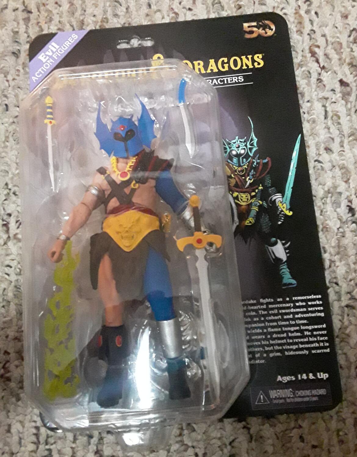 Got the ultimate Zarak since I've had a dry August thus far and was left wanting another NECA DnD figure after getting the retro color Warduke at the end of July. Zarak was the easy pick for me since I'm partial to goblins, I know the original LJN toy identifies Zarak as a half-orc but I'm pretty sure they did that because all of their toys were meant to be possible player-characters and goblins weren't an option. Just look at him though, he's a goblin. Considering he's a short character I would have liked to see more accessories, like they did later with Elkhorn, but the accessories he does come with are all nicely done. There's a decent set of equipment for an assassin and a good amount of alternate pieces but I might've done things a little different. Another head with a crazy cackling expression like the box art would have been a great inclusion and I would've preferred a small sack of coins/treasure in place of having two closed fist hands. Besides the fact that he already has a short-sword, two knives, and a grappling-hook/garrote to use, this guy gives me more of a strangle and bite energy when disarmed rather than a "put up yer dukes" vibe. I wasn't into the LJN toys but I very much enjoy NECA's takes and would certainly like to see them continue with this series, looking over the original assortment I'd probably most like to see Mercion done next. |