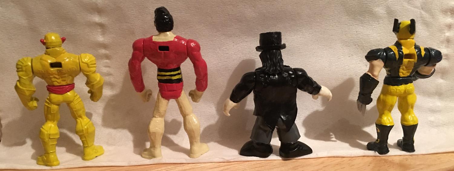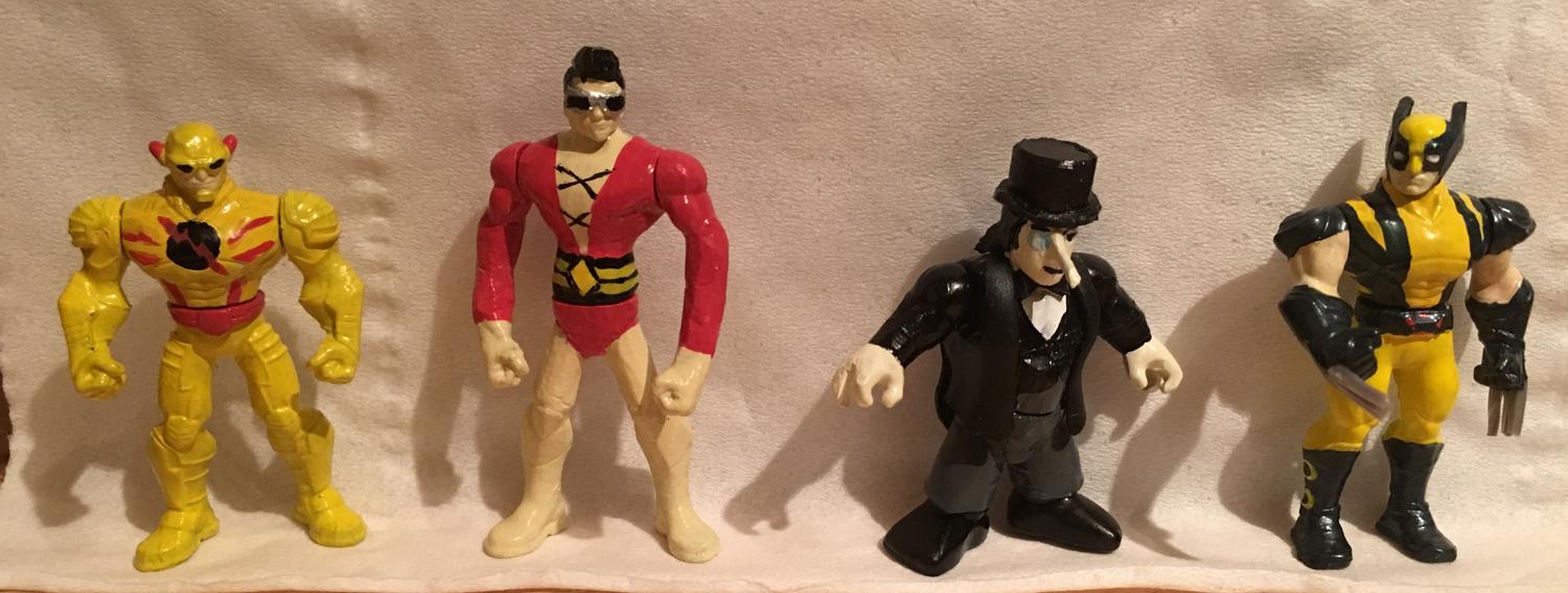 An update of the latest Custom made mighty minis reverse flash, plastic man, the penguin and wolverine front and back views
