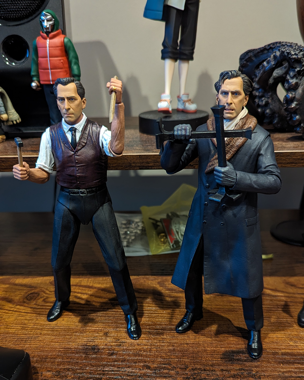 Best Buy got in the NECA Hammer Van Helsing figure. Got two due to the completely different display options. Wonderful figure, and the Peter Cushing likeness is excellent.