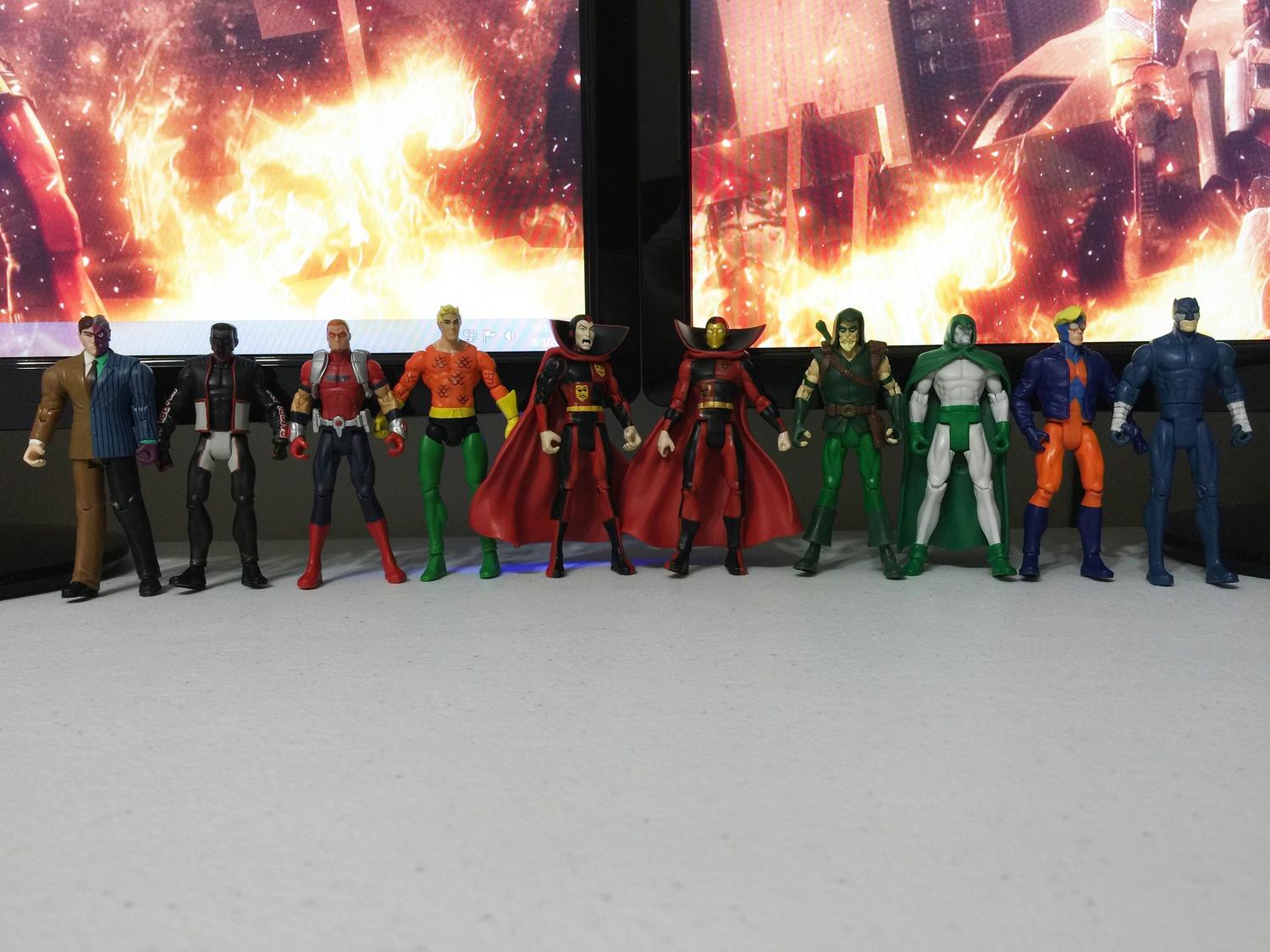 This is good news for me as while I wish they had more articulation, I like the style of the JLU figs and moreso the Young Justice figs. Young Justice Superman is one of my favourite looking Superman figs, so looking forward to him in the mail. http://i.imgur.com/xGkQpuS.jpg I think if you positioned these figs right, all of them could look OK interacting in a Diorama. |