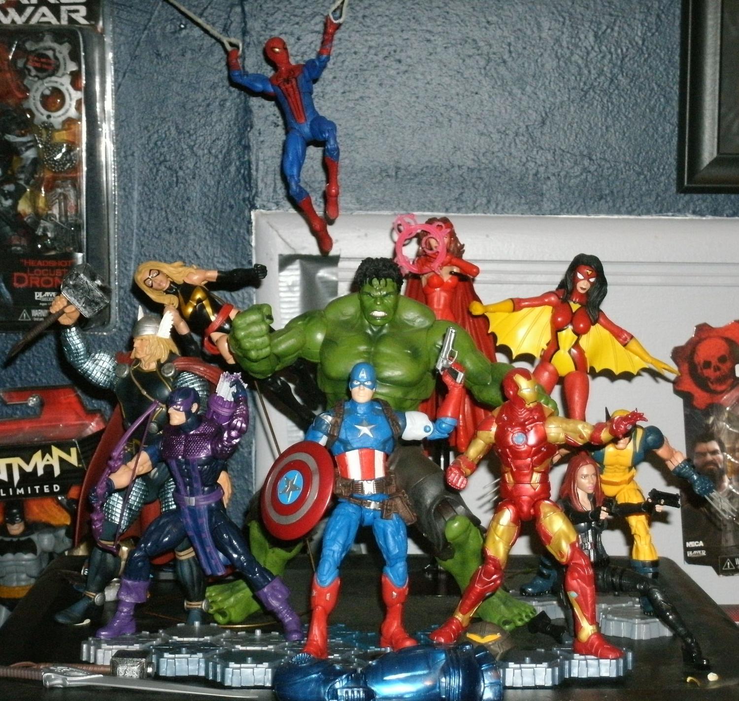 My Avengers collection/display is coming along nicely, I think. Looking forward to getting the new Spider-Man and 616 Spider-Woman to replace my current stand-ins.