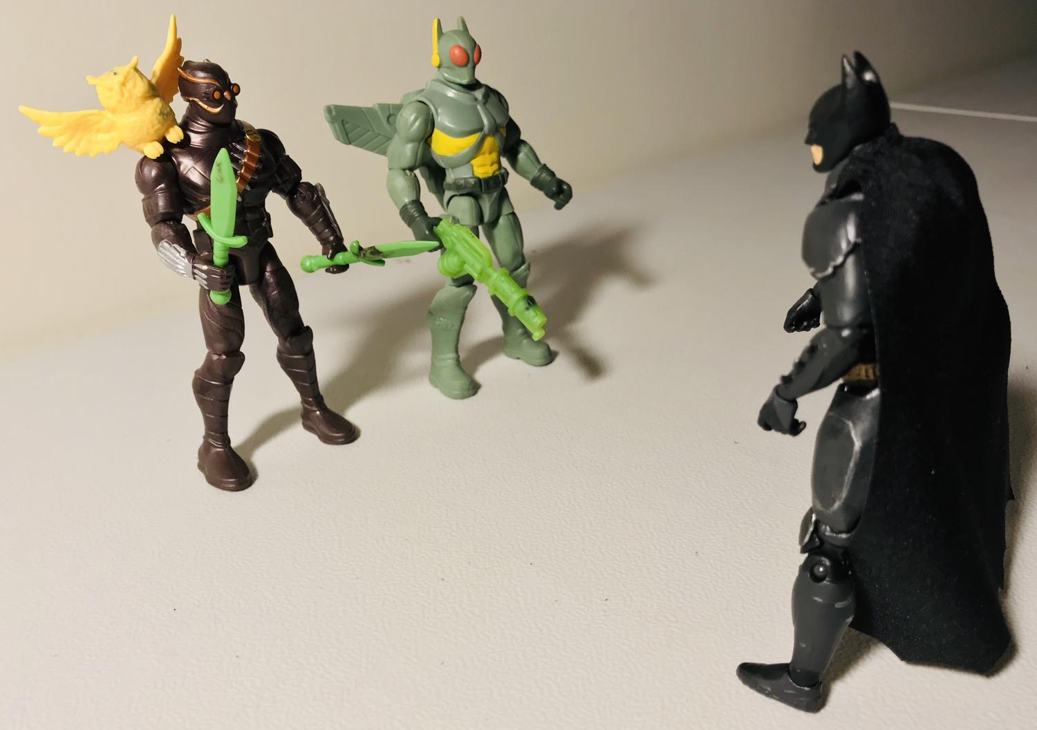 Caped Crusader Talon and Infinite Heroes Deathstroke.