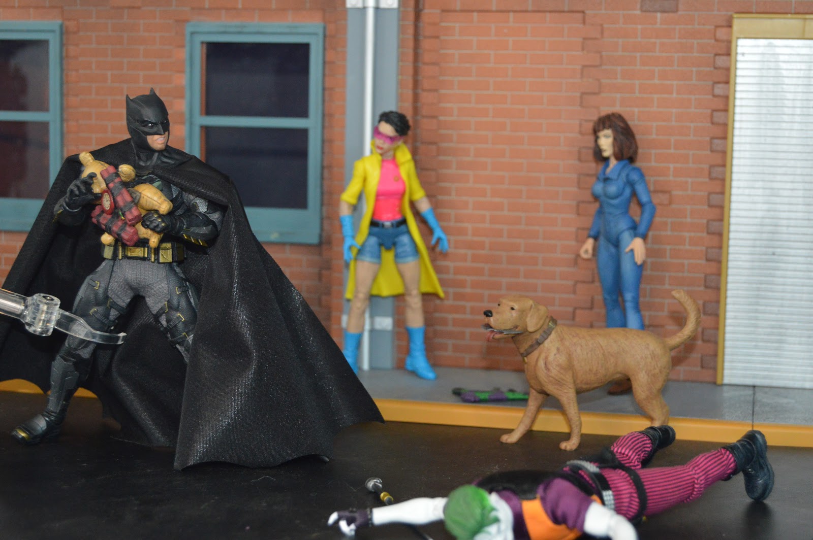 The figures are between 17,5 and 18 cm (Kirk is smaller than Scotty) so about 7". I bought my model used (and dusty) so when it arrived three of the four table legs already were broken off and the fourth was removed easily. There are holes in the ground for both the legs and also Joker's two feet. I sawed through the gum with a sharp knife. It was a bit difficult to get the right angle with the table plate still dangling from the knife he put into it (which I finally also cut off) but in the end went smoothly. Of course you can still see the inserts, you need to strategically put figures there so they are not too obvious. Or paint over them somehow. I'll do a proper post yet in the "Look what I just got" thread with some details. |