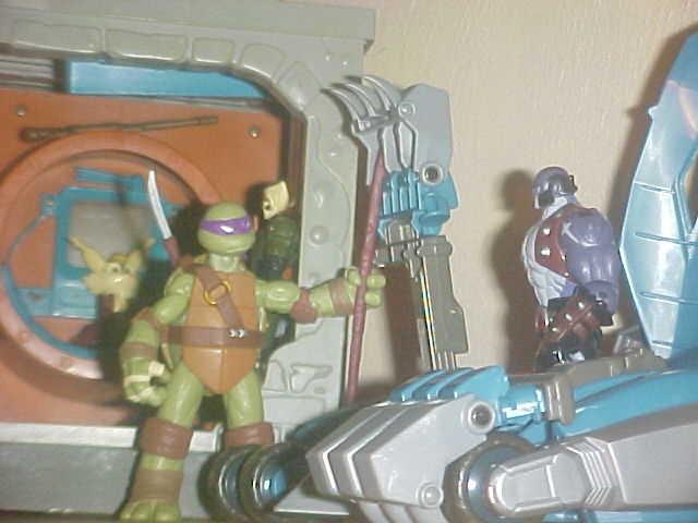 The Donny I got yesterday(already touched up his weapons some), and where on my shelf he ended up. =D I think I'm going to intermingle my T-cats with TMNT in the technodrome sewer playset so I can combine all the toy universes into one massive cross-universe display war. xD |