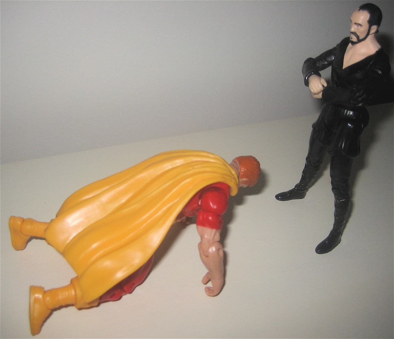 Unmasked Keaton and Penguin are sitting in my pile of loot at the moment. Keaton'll be kept MOC and eventually paired with Catwoman on a wall, while Penguin will be opened up and put in my display. As for Zod, I'm waiting 'til I see him in person. Hell, I might even wait until Reeve Superman is released. They'll be displayed side-by-side MOC like Keaton and Catwoman, assuming they both look okay. Probably won't get one without the other. I think I'm most looking forward to the DCC Injustice Joker/Batman set. Don't like that batman at all, but Joker looks pretty good. Let's just hope they've minimized the risk of breakages after all of this time - particularly since Joker seems to have a lot of articulation and runs the risk of being fragile. I figure it'll be fine, though. |