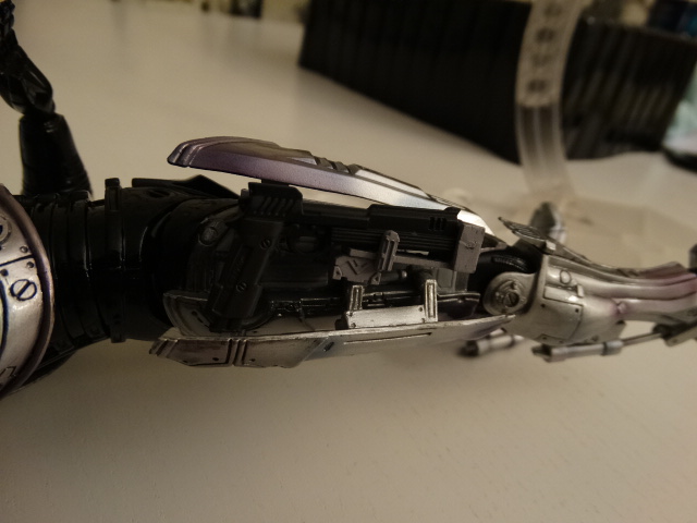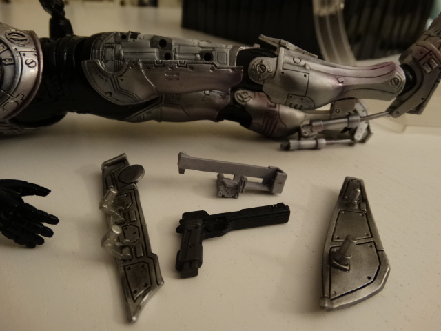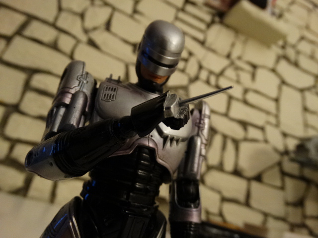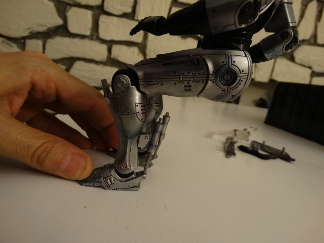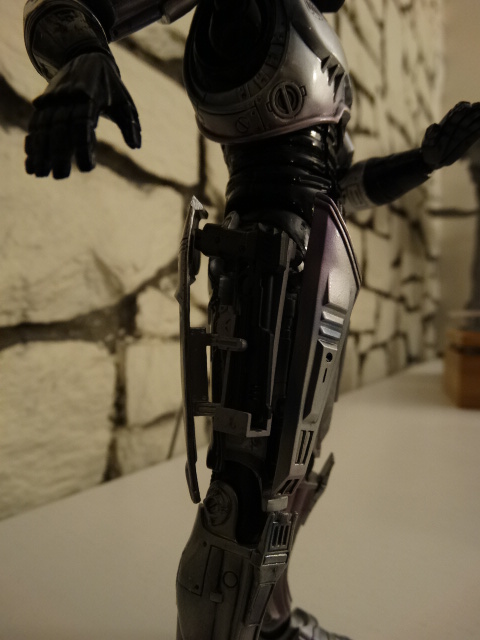 Legs are ok, but since it's Robocop we don't need to do some hi-kicks though http://www.toyark.com/attachment.php...1&d=1396994292 If you have a chair on scale, you can seat him normally, wich is great. http://www.toyark.com/attachment.php...1&d=1396994292 One of the best details, wich is also the biggest flaw, is the movie-accurate ankle articulation. The pipes are sliding in one another wich is great... but it means that you can't move the feet laterally, meaning no dynamic poses with slightly spreaded legs. http://www.toyark.com/attachment.php...1&d=1396994292 Also be careful while moving the ankles as the smaller part entering the pipe is very fragile. I almost broke mine :( http://www.toyark.com/attachment.php...1&d=1396994292 You can detach the front part of the right tigh and putting optional parts to re-create the gunrack gimmick http://www.toyark.com/attachment.php...1&d=1396994292 The gunrack assembled http://www.toyark.com/attachment.php...1&d=1396994292 "Dad, can you do that?" http://www.toyark.com/attachment.php...1&d=1396994292 Overall, I'd say it's a very nice display piece with great details, but don't hope for as much posing possibilities as you have with the other PAKs. |