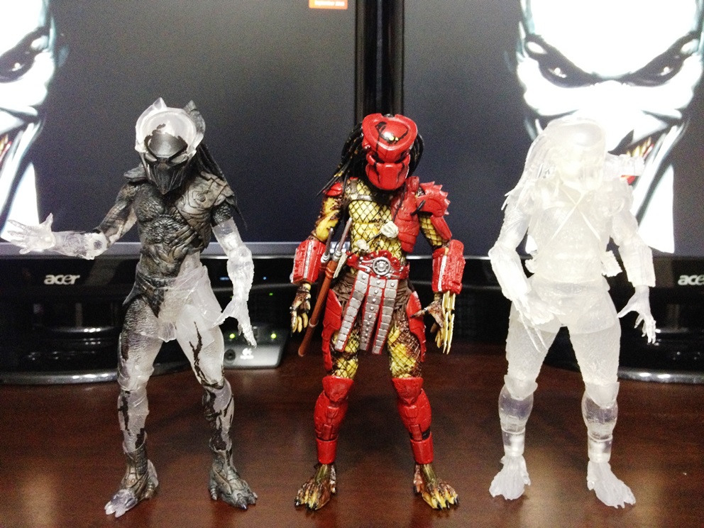 They had 3 Aliens in different delicious looking translucent shades as well as 3 cyborg robot looking warrior fellas. All 3 of the actual robots were gone and/or never there. |