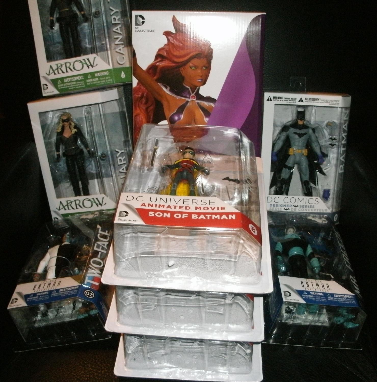 Got a nice haul today. Got three Robins to do a couple of customs, two of Arrow's Canary to do one as a comic-style custom, and got the Starfire statue because I got a decent deal. I'll probably sell it, though, for about $80 shipped in the U.S. if anyone is interested.