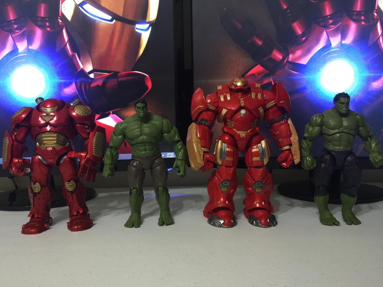 1000th post! Compare & decide! Marvel Select Hulkbuster, Marvel Hulk (Walmart Movie Masters), Marvel Legends Hulkbuster & Marvel Legends Hulk...
