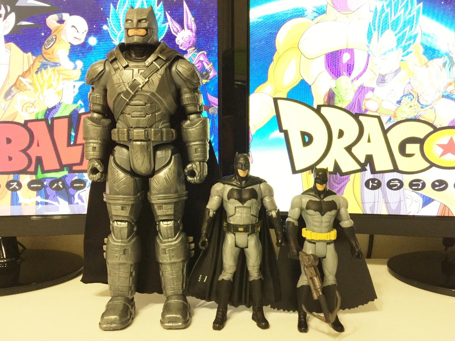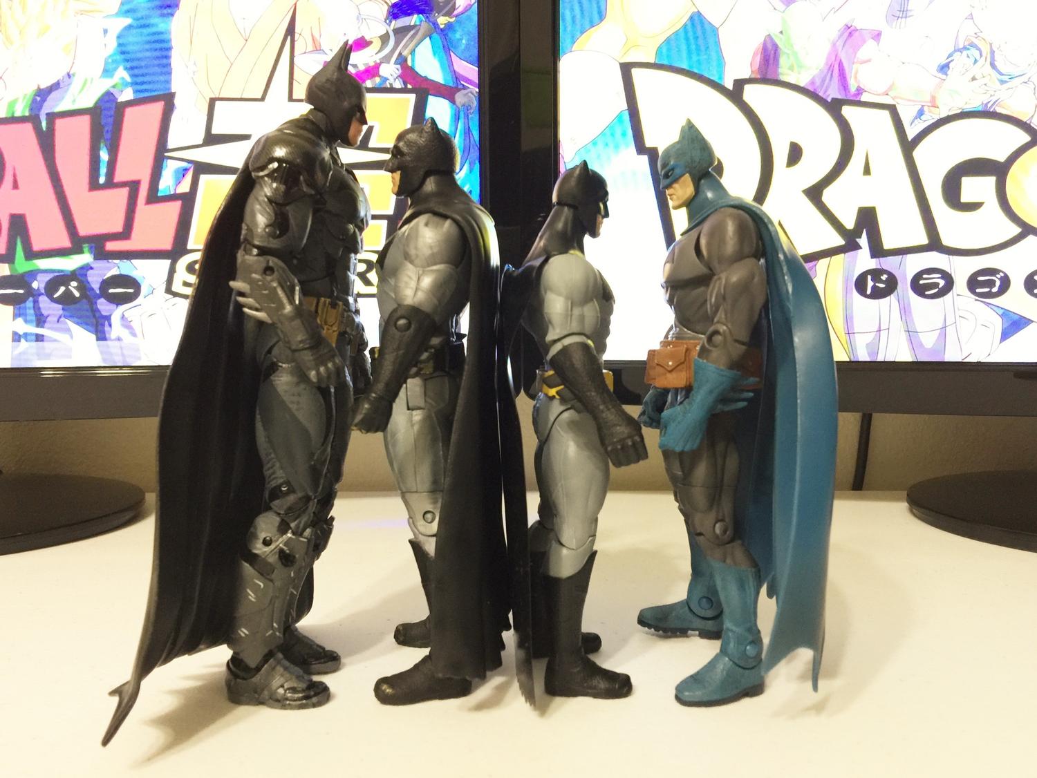 The eyes on Batman are also a bother. There's a bizarre quality about them. They look alright when looking at the figure in certain lights and angles, and look goofy in others, and no matter what you do, look terrible in photographs. Makes it hard for me to figure out if I wanna actually go ahead and white them out with some paint or just leave em be... Anyways...a quick reference photo...sorry for the crappy lighting... http://i79.photobucket.com/albums/j1...172729-1_1.jpg Batfleck does fit in a little better though with Marvel Legends though in terms of scale (although you couldn't tell by the fact that I picked MCU Cap of all figures to photograph, which I always felt was just a bit on the small side...) http://i79.photobucket.com/albums/j1...1_172653-1.jpg |