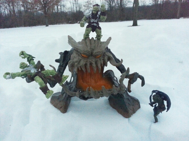 Today's figure appreciation can still be found at Toys R Us in their True Legends line. There is the Tree Warrior and a couple Orcs that are sold separately. The one shortfall of the Ent is that it isn't sculpted in the back and is just a hollow piece but it makes a really nice display piece. There is also the winged orc on the right. That figure is from the Bad Guys set from Early Learning Centre's Tower of Doom line and is just a statue piece.