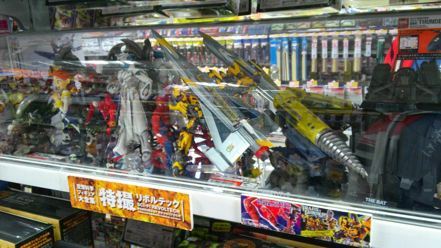 ?????-?????????????????????????????????????????? Anyway since the live movie was aired years ago, Transformers is big again in the toy stores in Japan. And with their influence, other companies are doign transforming toys again like we had all of those transforming watches, etc. in the 80es. They also get a fair amount of limited editions of Masterpieces. I have passed both yellow and golden MP Bumblebees, and they have another one I don't remember the name who looks like Wheeljack but with a more agressive face. As for the store, this is the "Bic Camera" of Yurakucho. Bic Camera is a chain of electronic stores, but few years back they began to sell toys as well with the increase in number of tourists so they could sell everything in one point. If you have the chance to go to Japan, unless you are searching for something rare, old or specific, Bic Camera or Yodobashi Camera (the rival chainstore) is the place to go nowadays as there are a lot of them almost everywhere and they basically sell every toy minus 10 to 30% from the public retail price. |