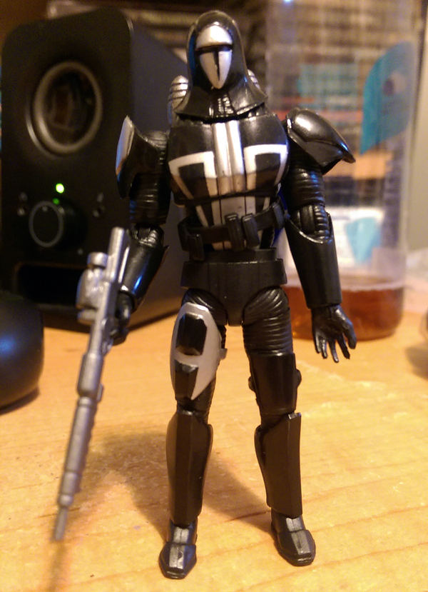 Its a Star Wars Mandalorian neo crusader from Knights of the Old Republic the Video Game or so it says on Ebay. Here is the link Star Wars Mandalorian Neo Crusader Knights of the Old Republic fan made Mando i knew i saw him from some where.