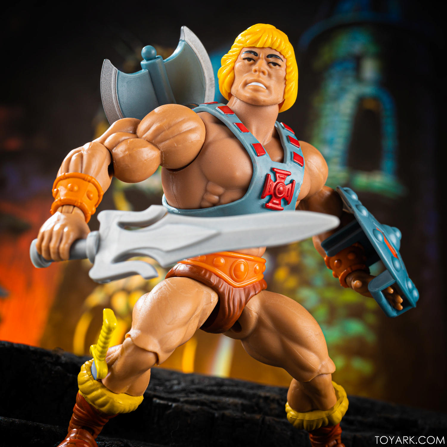 The cut of the crotch area next to exposed ball joints makes He-Man look more like a male stripper than a barbarian warrior... Need to take pics of him swinging his hips and evil-lyn and teela holding up money.