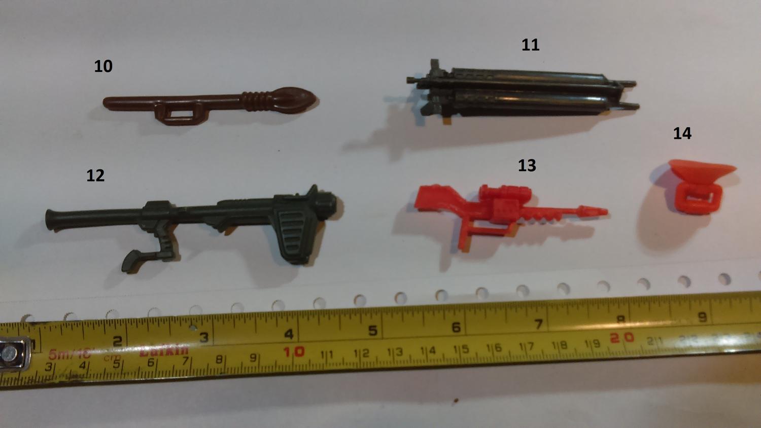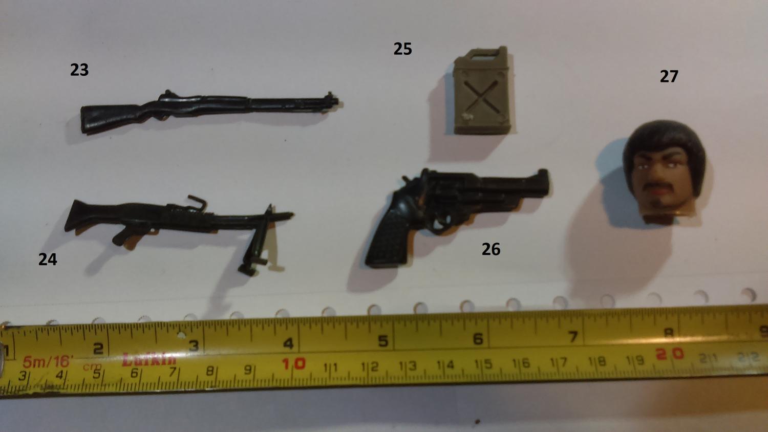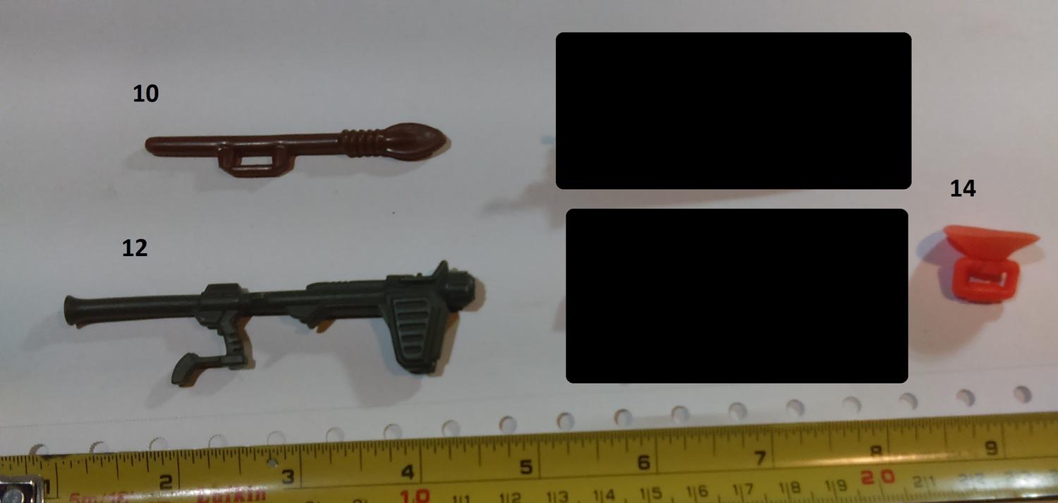 11. Star Wars Clone Wars 13. Lanard Corps Night Lazer 16. Hasbro Star Wars Scorch (or a later reuse of that weapon) 20 Lanard Corps John Eagle 38 Chap Mei Soldier Force 44. GI JOE Sharc 60. Corps Hammer 61. Corps Steve Wyoming 63. Commando Ranger or some other knock off. 64. Lanard Corps John Eagle 71. GI JOE HEadquarters 1992 86. GI JOE Cobra FANG 87. GI JOE Cobra Mamba |