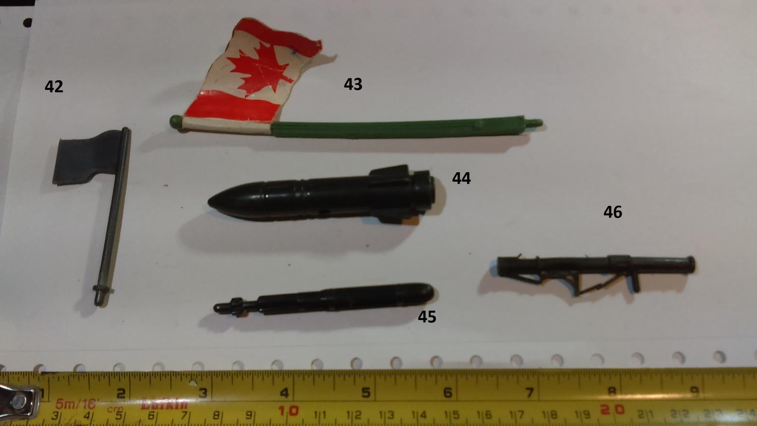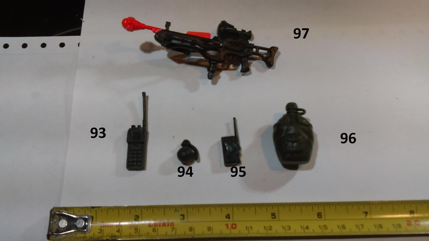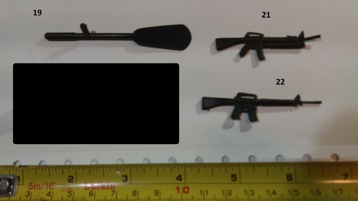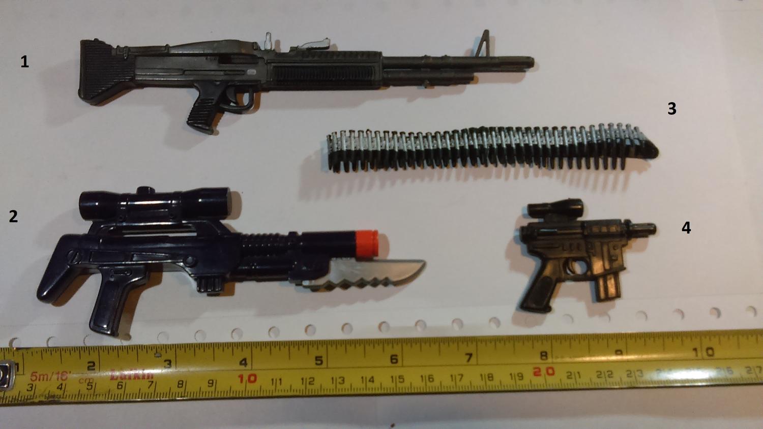 11. Star Wars Clone Wars 13. Lanard Corps Night Lazer 16. Hasbro Star Wars Scorch (or a later reuse of that weapon) 20 Lanard Corps John Eagle 38 Chap Mei Soldier Force 44. GI JOE Sharc 60. Corps Hammer 61. Corps Steve Wyoming 63. Commando Ranger or some other knock off. 64. Lanard Corps John Eagle 71. GI JOE HEadquarters 1992 86. GI JOE Cobra FANG 87. GI JOE Cobra Mamba |