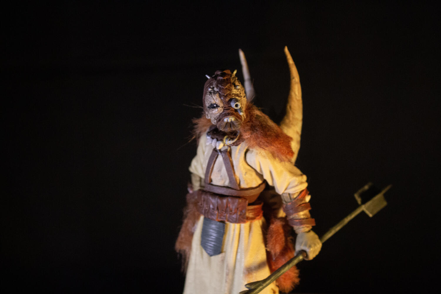 Attachment 77197 Attachment 77198 Attachment 77199 Attachment 77200 Attachment 77201 This is my custom Black Series Tusken King from Star Wars Galaxies! I have almost no personal connection to this character, as I never played Galaxies while it was active, but I love his design! He’s genuinely one of the coolest looking Tuskens in the series, and I needed him for my collection. I think they used some of his design elements when making the Tusken Chieftain from Book of Boba Fett. When converting this guy into black series, I took inspiration from both his in-game appearance and his artwork. Mostly the King is a standard black series Tusken Raider, with the (heavily modified) torso of a Tusken Chieftain. His head was crafted with ave’s apoxie, and I added soft goods faux fur for his bantha fur coat and kama. The Krayt Dragon skull backpack and his special Gaderffii were both 3D designed and printed by me. Let me know what you think! |