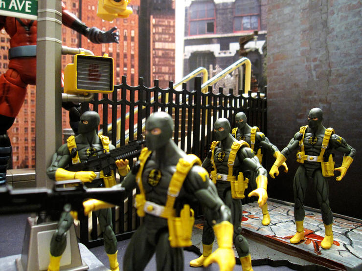 Sometimes I'll end up really liking a figure and immediately want to get multiples, like with MU AIM Soldier and GI JOE POC Alley Viper. I also couldn't resist building when they're on sale, like with the Shield/Hydra/Hand pack from TRU. I bought 6 of them at TRU for $9 each. Couldn't help it. I hear you all about not having the room to display. I'll set up a display somewhere, take some pics and then tear it all down until next time. The best part of army building, though, is that when you do make a set-up the scene really fills out more. I've attached a few pics that I've taken with some of my army builders. Attachment 5272 Attachment 5273 Attachment 5274 Attachment 5275 |