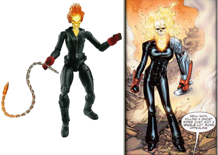Symbiote inspired me to take a stab at the Alejandre Ghost Rider, so that's what I plan on doing using the Avengers Black Widow buck if I can ever find her and an extra her. http://www.toyark.com/attachment.php...1&d=1341805684 I've got extra little plates from trimming wraith armors for my cyber ninja customs, so I'm going to try attaching those to create the armored plating. Think I might do mine a shade different though and go for the more symmetrical look with both sides being even. I'm hoping to build the armor plates off of the widow's bite stingers. The pic was rushed so it's not lined up right, but just to get an idea of how she could look. |