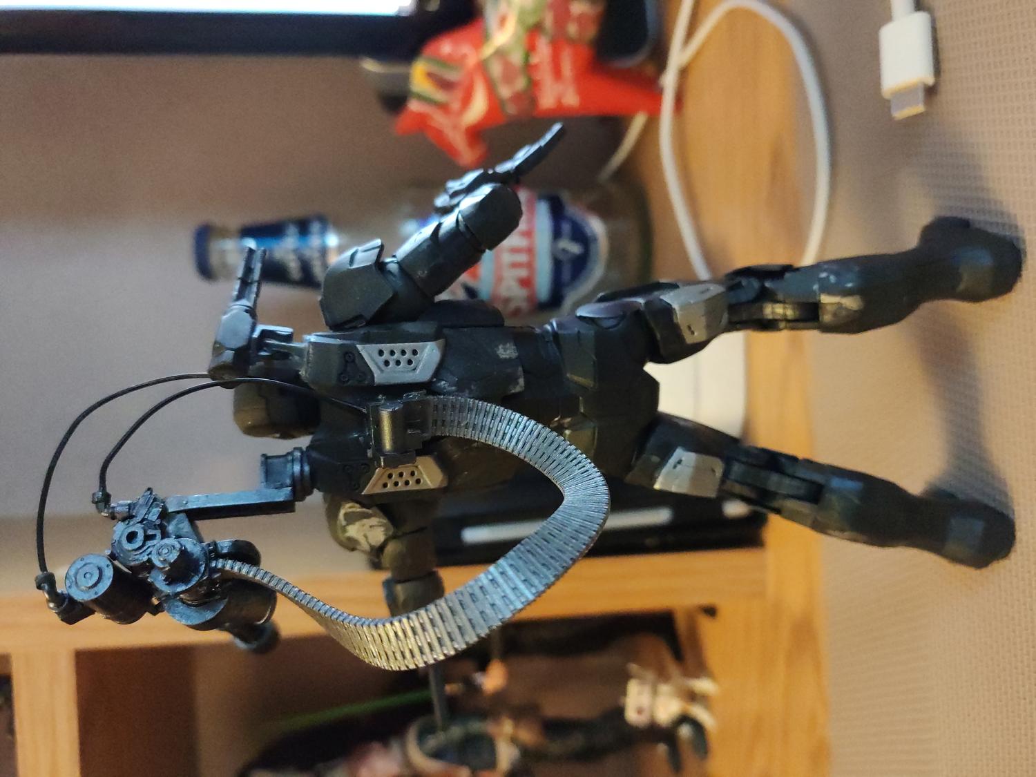 When I got this ML Punisher Warmachine figure I really liked it very much but still something was missing there. So I decided to upgrade it alittle. I found Little Armory (LD012) M134 Minigun and thought that it would fit really good on figure's shoulder. Yet when I put it together I found out that it won't fit on his right shoulder (well, maybe someone more skilled would fix that easily but that's not me ) so I placed it on his left. I still think that it's placed a little too high but as before - I couldn't fix that. Finally I glued ammo belt port on his back. I also painted skull on helmet, red eyes and added more paint on the chest one. Well, it's not as beautiful as I would like it to be but hey! Frank, neither is an artist