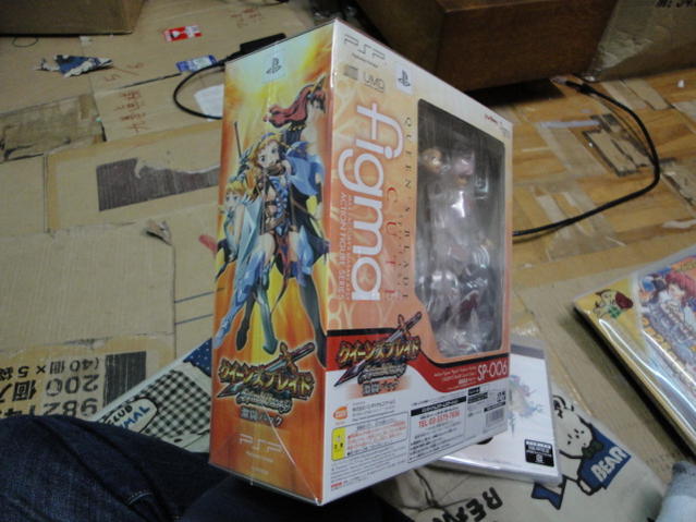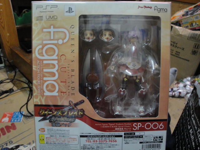 The special edition of Queen's Blade comes with: PSP game soft, Vocal collections CD, and fully articulated FIGMA figure of the new heroine, CUTE. (Yes, that is her name) And as a special present from Yodobashi Camera - Akiba, they gave me a small visual file with all the characters! (Hoo rah!)