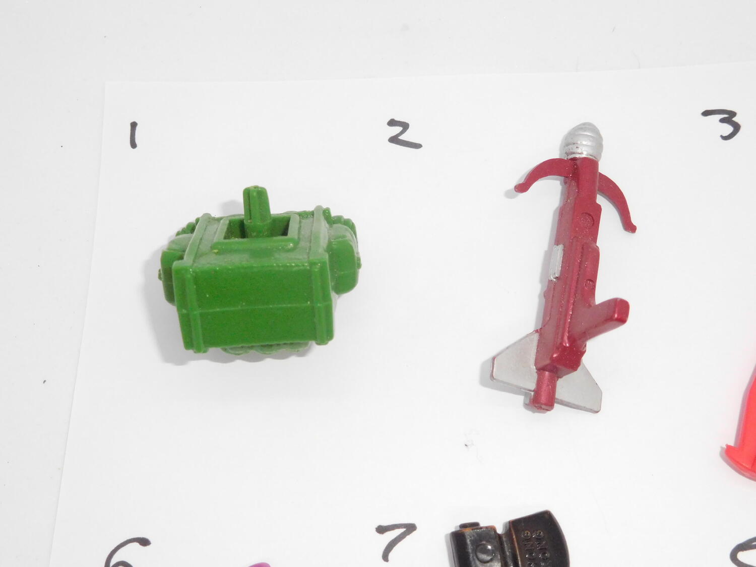 1. GI JOE mold in origins. It's Tunnel Rat's pack, but his had holes on the flat end for flash lights. And it wasn't that bright of a green. Not sure if it's a bootleg or Hasbro reused it somewhere else.