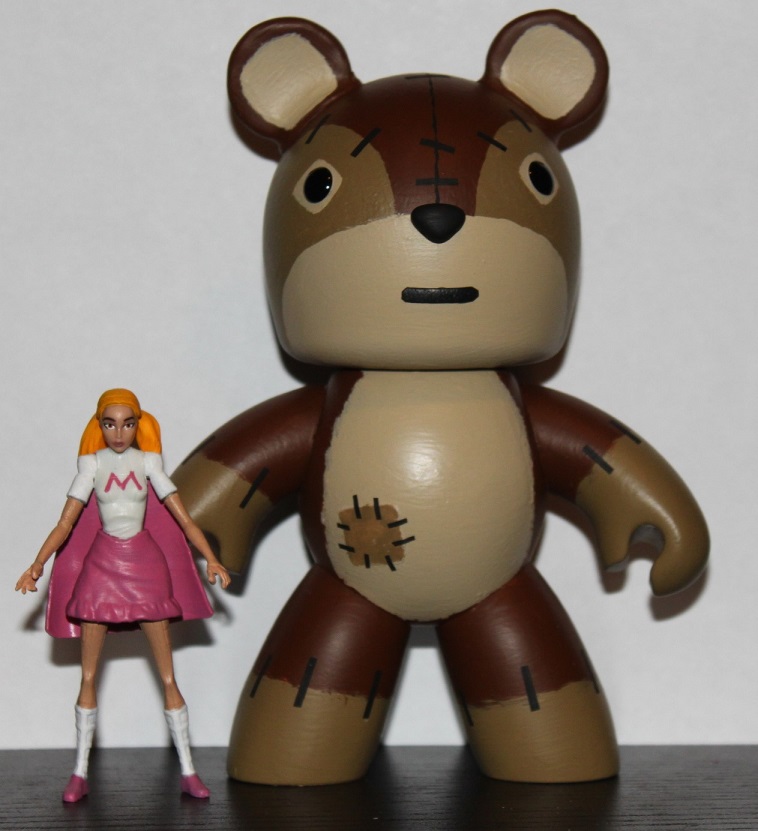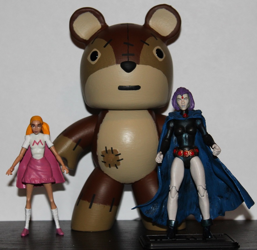 Just finished a custom project from Teen Titans season 5, episode 7 'Hide and Seek.' Raven has to babysit/protect a group of young heroes. One of whom is Melvin a girl that can bring her imagination to life. That imagination is Bobby a giant teddy bear with super strength that can become invisible. Aged and non-anime'd the characters to go with my collection style. Bobby - Mighty Mugg Storm Shadow Raven - Asajj Ventress head with complete hair sculpt