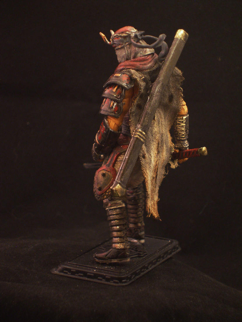 This guy is straight out of my imagination so i hope you guys like him! the base was a poc storm shadow and then i raided my parts box, gave him a weathered look with lil' dragons painted on the armor on his left arm. i imagined the character as a wandering murder machine and i hope he looks the part.