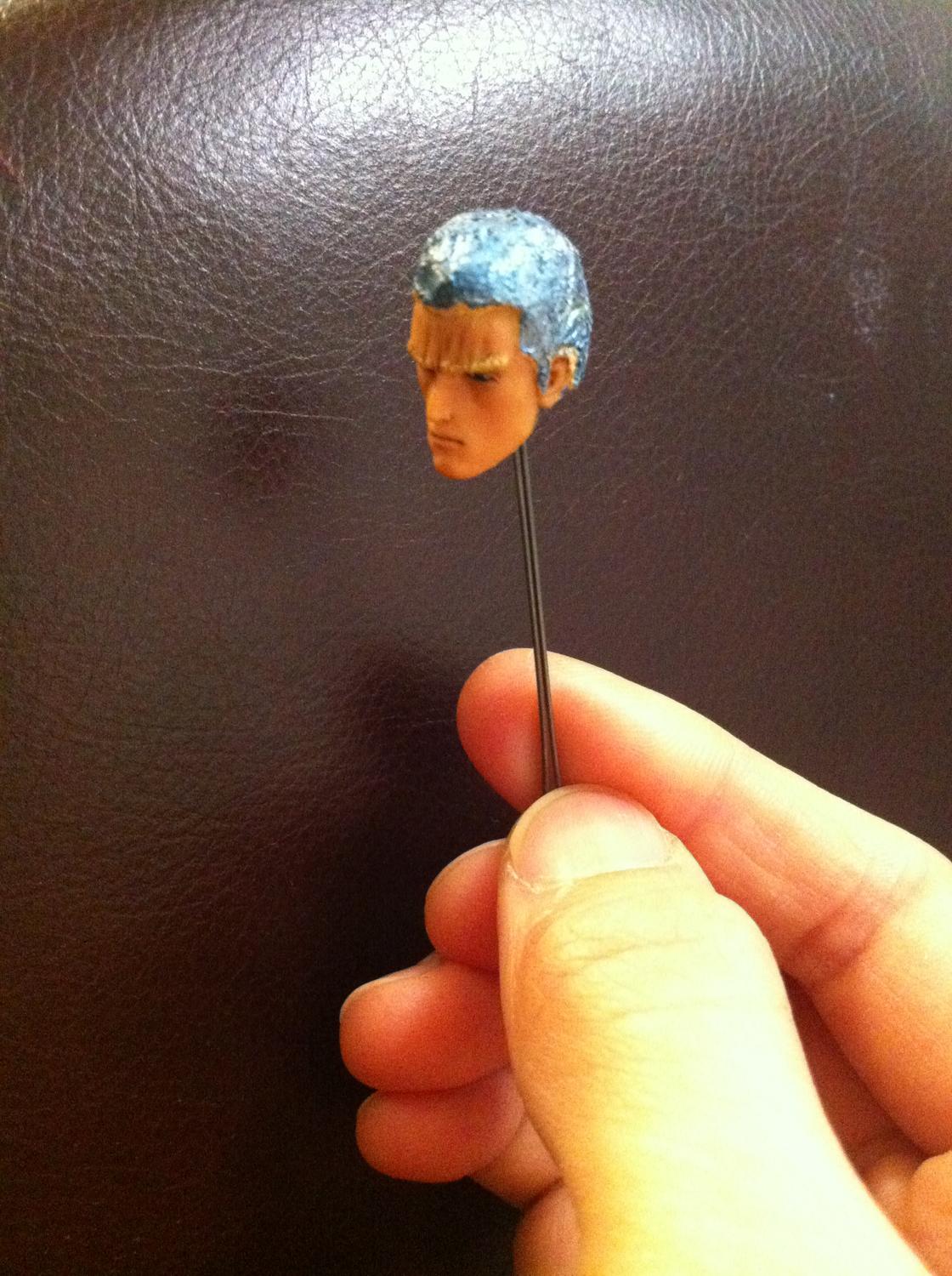 It's funny, I think would be cooler if you had not modified the head at all- it looked like an anime Steve Rogers.