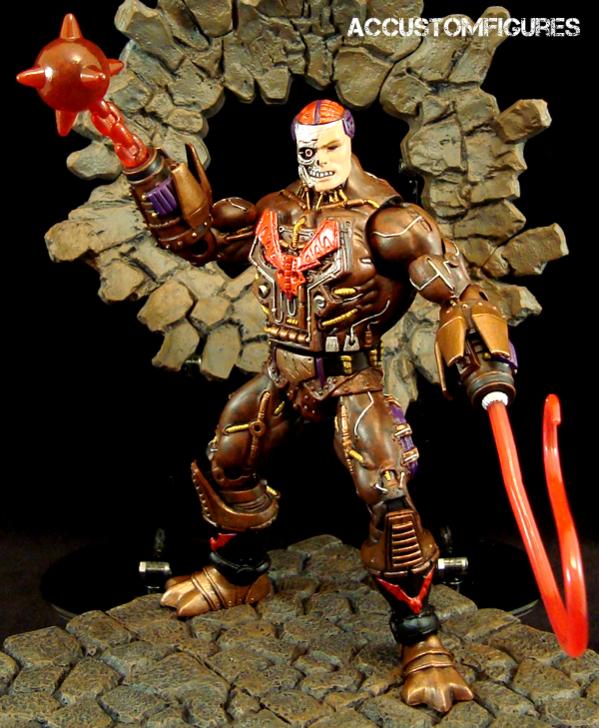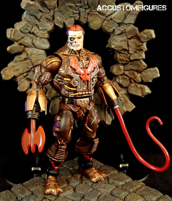 Rust-Bucket was made from a Cosmic Skeletor base, Hordak feet and arms, a heavily modified battle damaged Faker head, with sculpted details on the head and chest, and some fodder parts. Finished up with 6 different metallic paints, and some heavily detailed shading with some solid colors to pop! Enjoy! AC |
