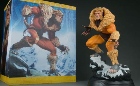 A former subject of the notorious ‘Weapon X’ project, Victor Creed embraced his primal instincts when he became the feral mutant, Sabretooth. Crouched over a snow-covered slab of arctic terrain, the ruthless predator bristles in anticipation of his next clash with longtime rival, Wolverine. Fangs bared in a vicious sneer, and muscles rippling under his classic fur-trimmed brown and gold costume, Creed relishes the moment before they cross paths, just itching to tear into the flesh of his greatest foe.