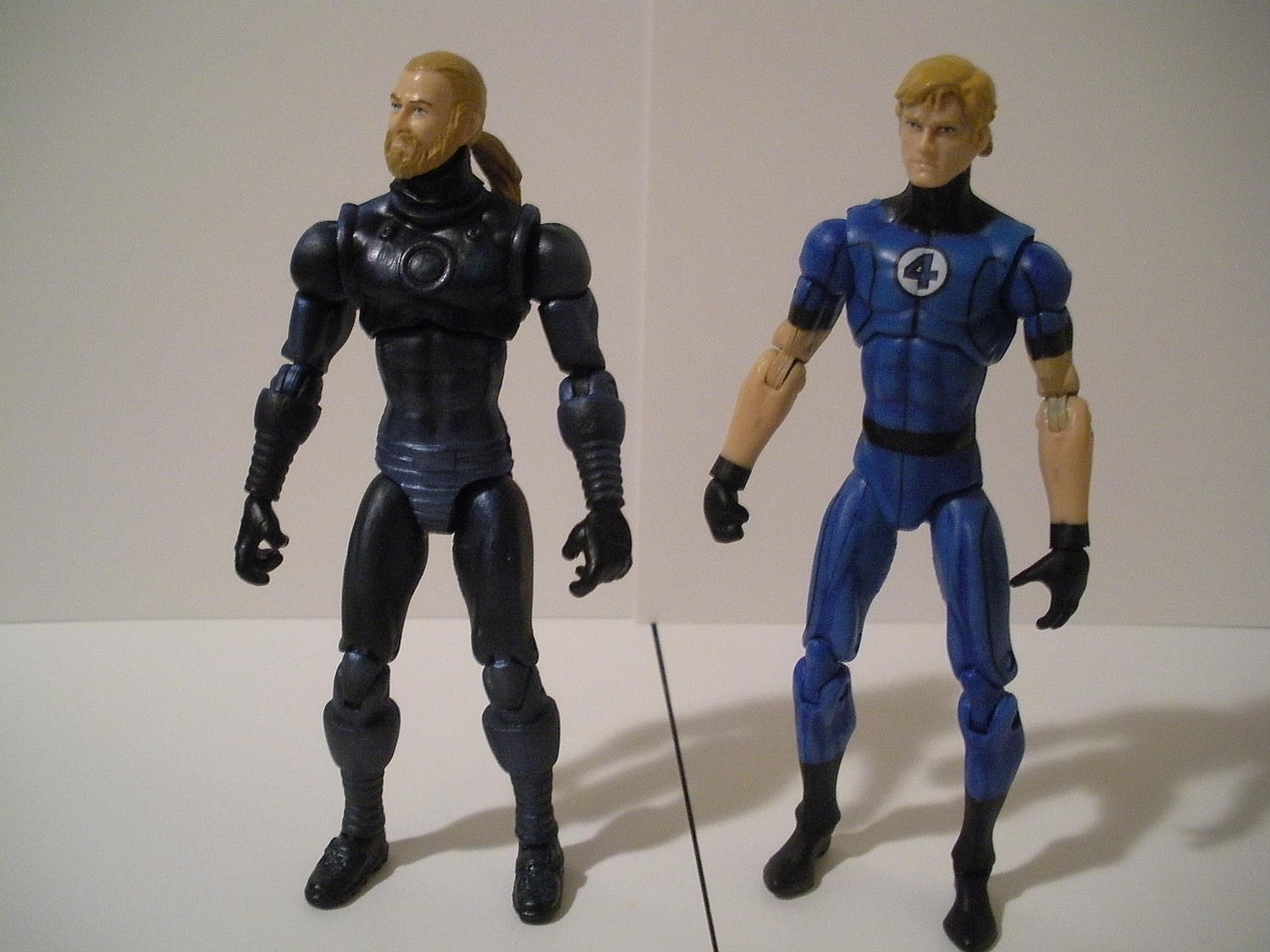 Here's a few more. Ares (my Dark Avengers are FINALLY complete!), some tweaks to my older Franklin Richards and Death's Head customs, an Epting inspired Johnny Storm, Shayde from the old Doctor Who comics, and an easy Doombot using a great head cast from Hunter Artworks.