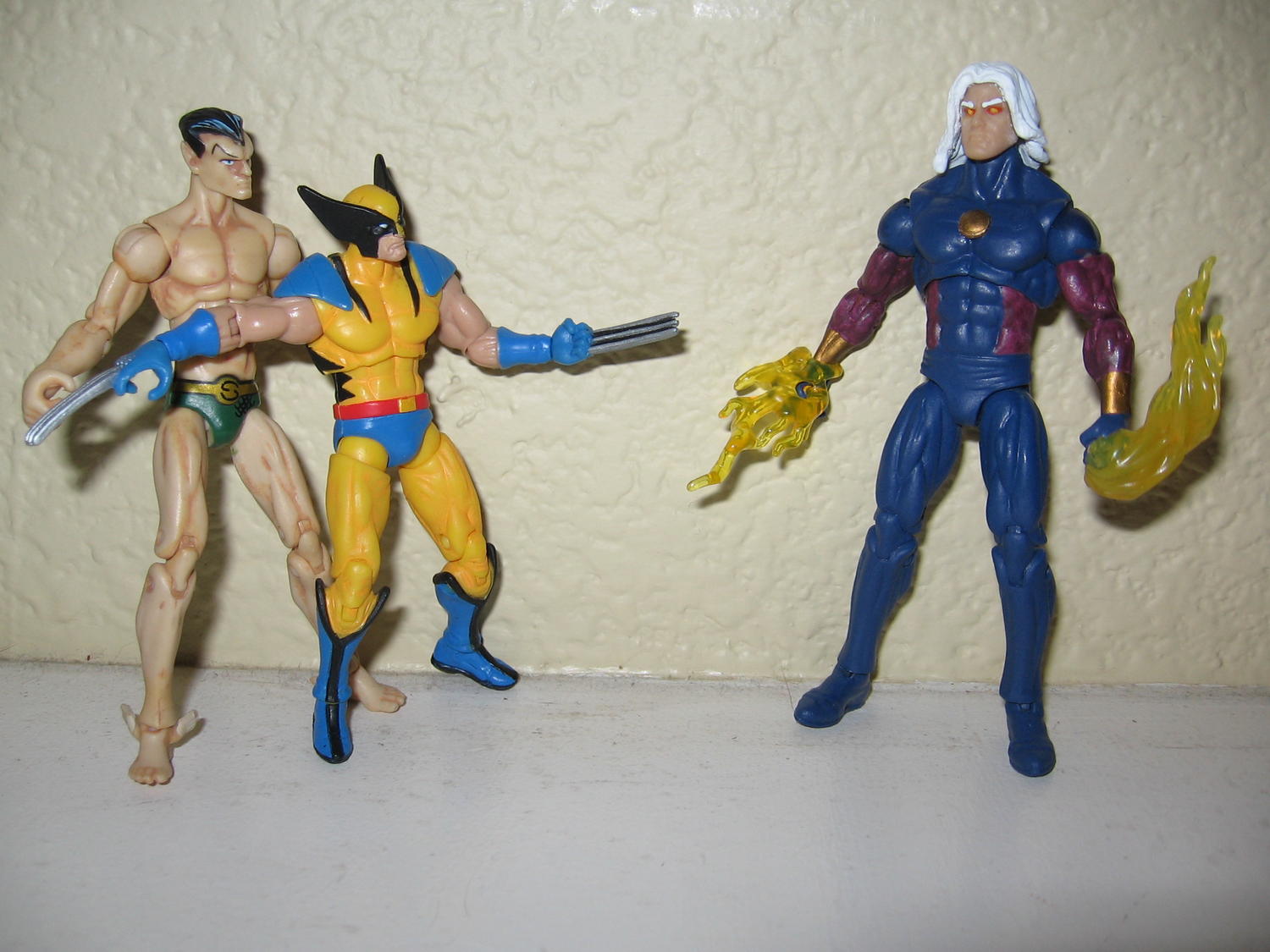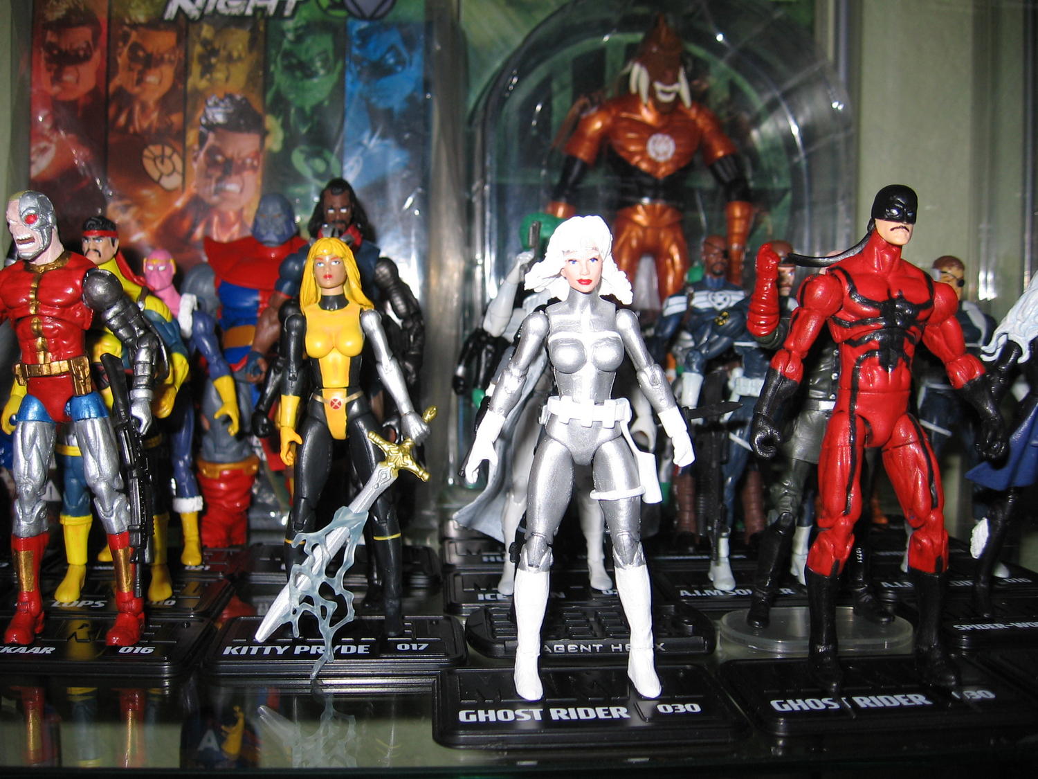 Thanks for the praise, Chuck. She wasn't too difficlut. Head-swap Kitty and Black Widow, paint Widow's hair yellow and Kitty's arm silver and you're done! The sword is from the CA line Captain Britain with Storm's lightning effect.