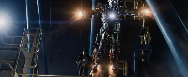 It’s an extremely brief appearance during the final fight in the IM3 movie...here’s a photo (video clip won’t do because you’d miss it).
