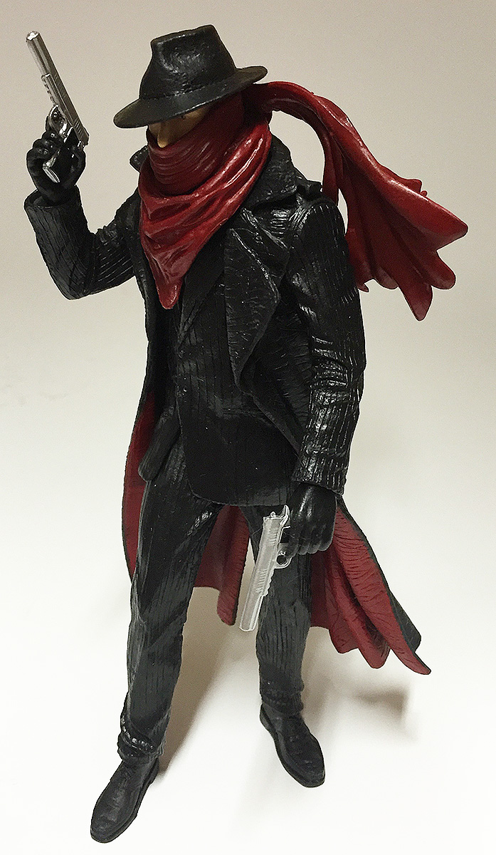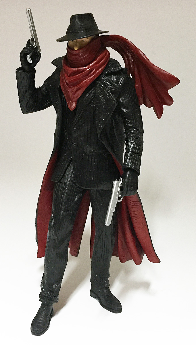 Quick but fun custom. Base is an American Psycho figure, with a trench coat from a Marvel Select Punisher. Hat is from a Nightmare on Elm Street Freddy, Scarf from a Marvel Legends Bishop and an unknown part. Guns are from a DC Collectibles Comedian.