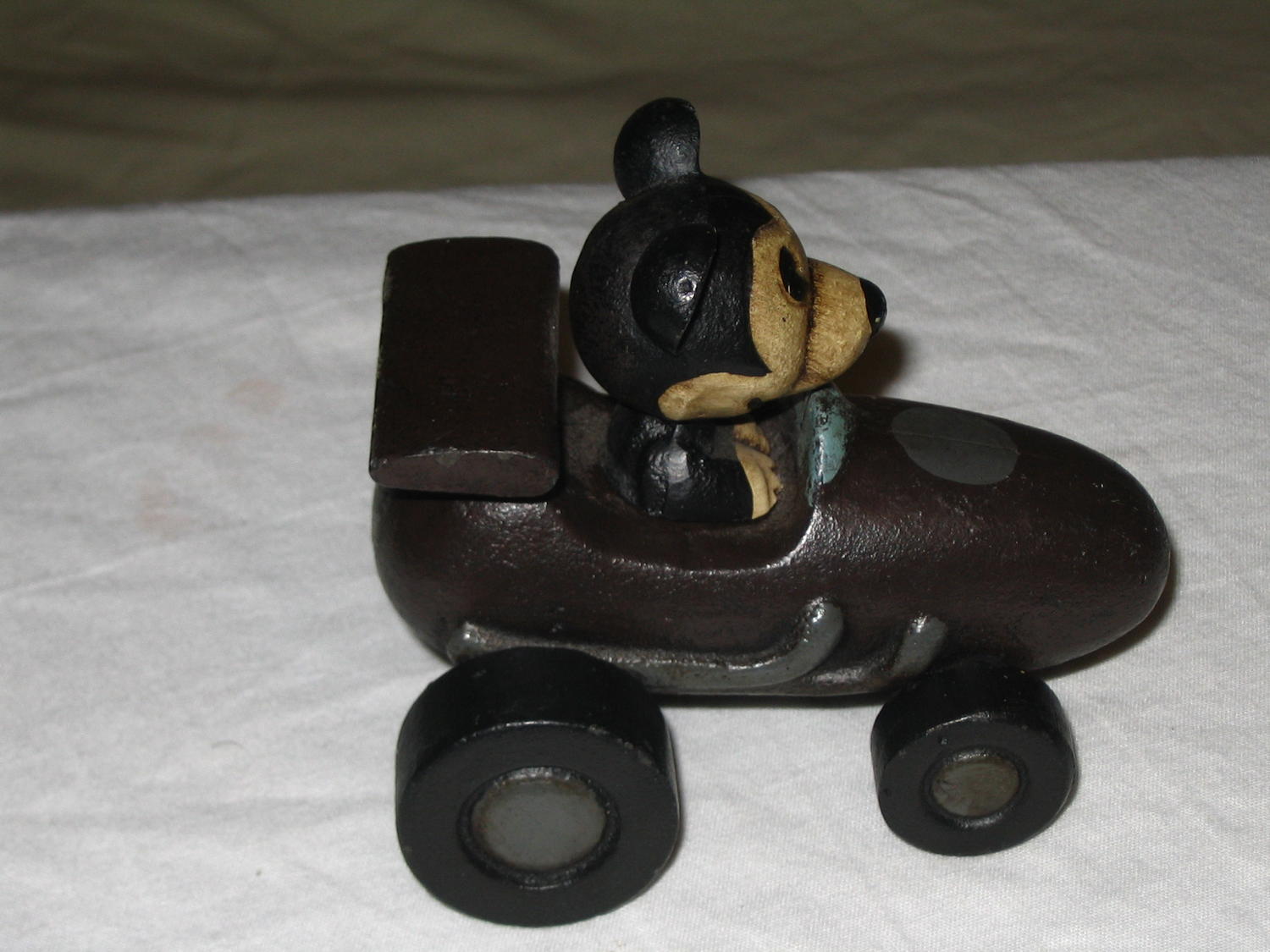 There are two cars one Mickey is driving is around 4 inches long and around 3 1/2 inches tall