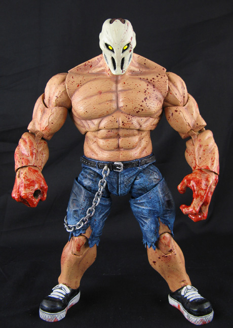 When I first saw the Studio Series Hulk I knew what he would be used for, the ultimate Splatterhouse Rick Taylor! This video game is one of if not THE goriest, bloodiest, and disturbing games out there so I really had to do Rick justice. The head is Hulk's shaved down noggin with a hand sculpted Terror Mask based on the Gamestop exclusive mask as reference. The feet were from a LCBH Clownface, drilled out and modded for the new 45 deg ankle joint. One belt, chain, and extremely bloody paint job later, Rick is ready to pummel his way through anything!