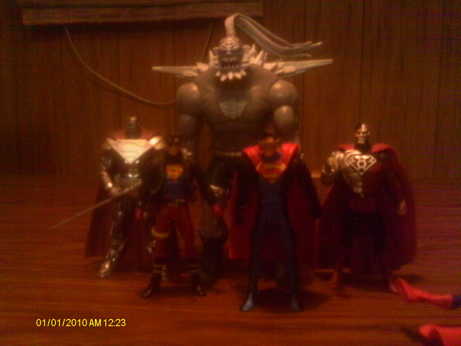 The boxes are very nice and they resemble the "Death of Superman" Bag. The inner boxes are Diamond shaped with a Die Cut opening so you can see the beasts face. Also the Inner packageing is very Similar to the Wonder Twins one just no talking box. Also the Figure comes with a Tattered Red Superman cape that fits over either hand/arm. I give it a 3.