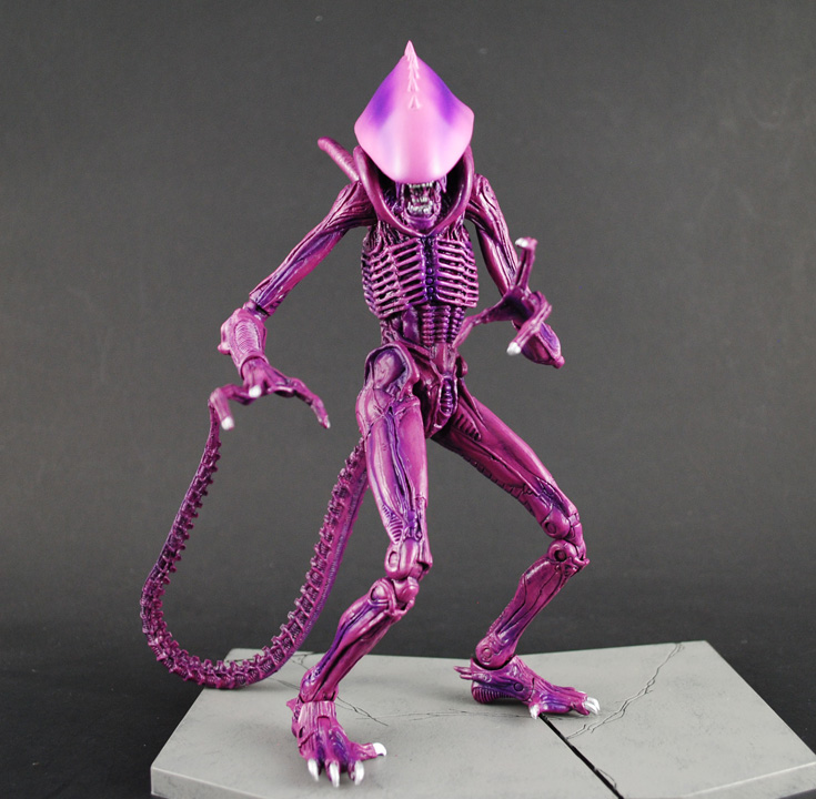 The Aliens are back and they're taking over all sorts of life forms to terrorize the universe! Straight from the classic Capcom Alien vs Predator arcade game comes the Alien Arachnoid mini-boss! You found this leaping foe while riding the APC into battle and man was he a pain to hit. Standing 8" tall this Arachnoid Alien was created by combing the dog Runner Alien with Warrior Alien lower limbs and tail. is crest was hand sculpted and the whole figure airbrushed as to resemble the sprite on screen.