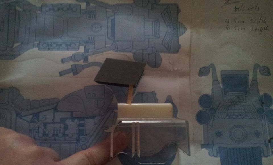 A whole array of bits n pieces used for this build. Plastic, card, RC wheels, Brass Buttons, Sculpting, RC Lights, Jewelery Boxes, Pleather seating, straws, metal pieces, pleather scabbards for Lawrod/Scatter guns from the PX Dredd etc.