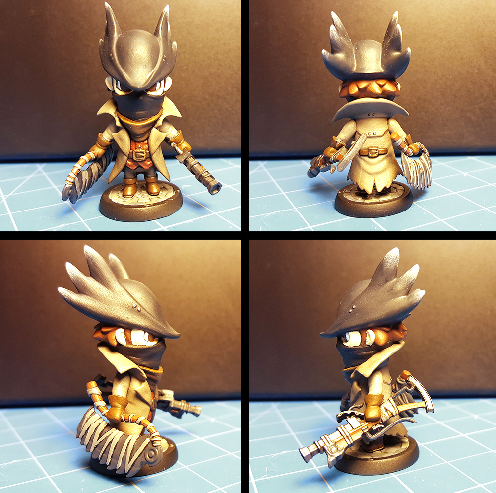 I'm a huge action figure fan and Bloodborne (I CANNOT WAIT for the Figma Bloodborne Hunter), and last year I decided to make myself a little Bloodborne Hunter for use in a board game. I figured I'd post it here for fun, and the next thing I make I'm going to try to mess with articulation.