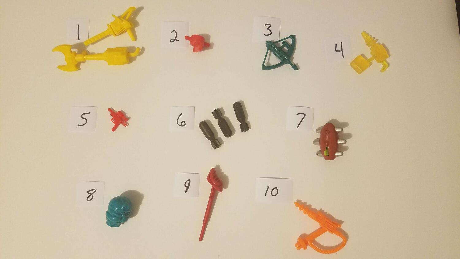 The two yellow things on number 1 have the same cat looking symbol, the others don't seem to have any symbols or markings. Any help would be greatly appreciated!