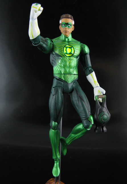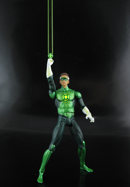 Somebody wrote in to me, "Hey, why didn't Hal have white gloves in the movie? You need to do that!" And here we are! I tweaked Hal's suit for the eventual Green Lantern 2 movie, adding white and black detail including the grey on the sides of his hairline like in the comics. His range of articulation needed to be modded too so I carved out plastic from the back of the knees, front of his biceps, and back of the head/neck so he could fly looking forward. One flight stand and energy effects later and this fan suggestion was completed, Hal ready to take flight as his distinguished, post-parallax self.